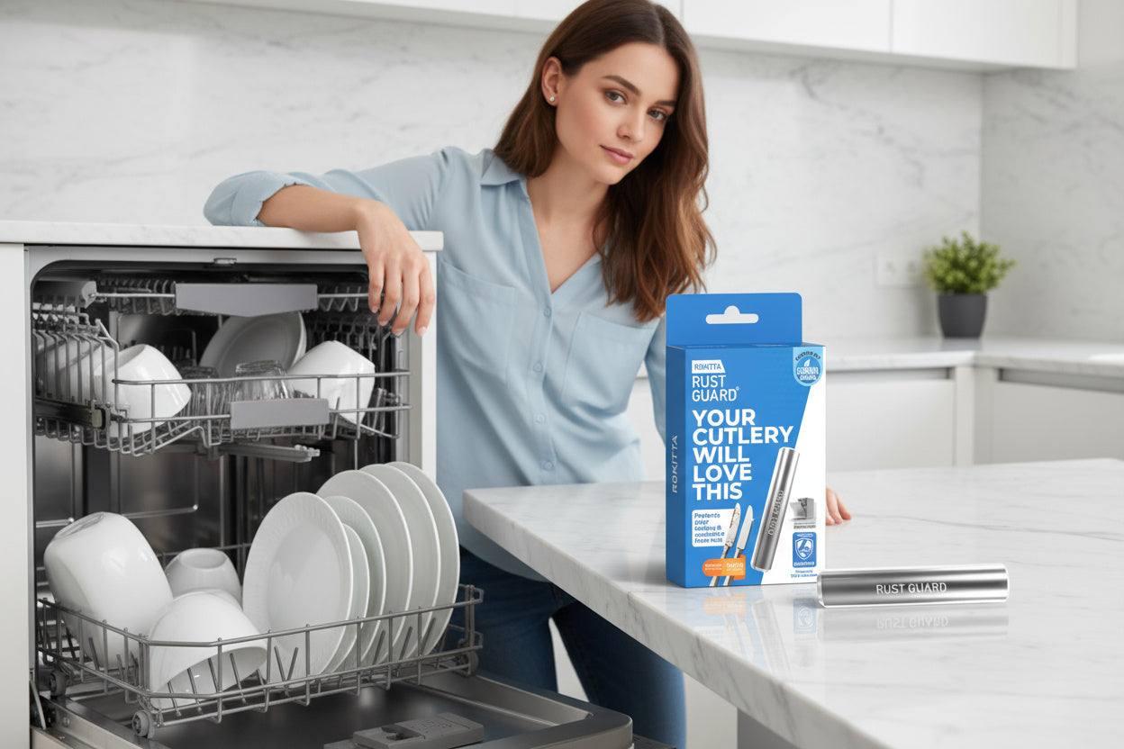 Rust stains on cutlery and inside dishwashers are more than annoying – they can damage your appliances and ruin your dishes. Rust Guard prevents this problem before it even starts.